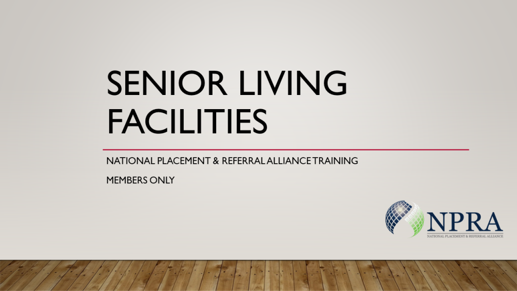 This course is free to members of the NPRA. Contact your local representative for your student voucher to cover this course. It is recommended that both the Registered Agents and the Senior Living Facilities Members watch these lessons.